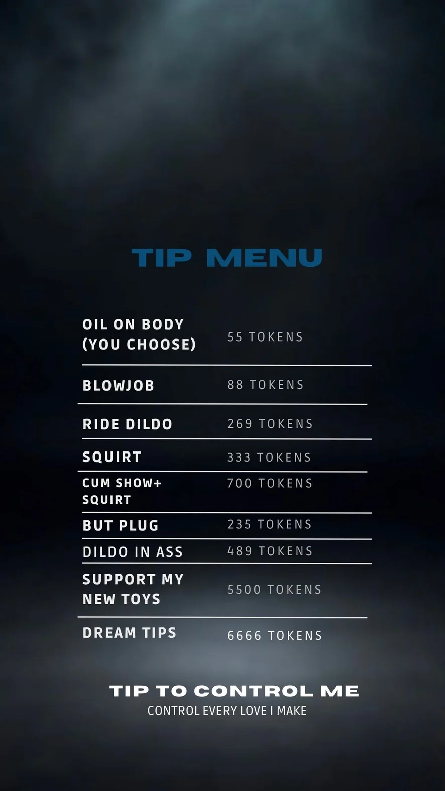 Ballo erotico, Tradimento, Dildo o Vibratore, Doccia, Feticismo dei piedi, Esibizionismo, Masturbazione, Nylon, Spettacolo con olio, Twerk, Pecorina, Ahegao, Zoccolo di cammello, Ditalino, Linguaggio esplicito, Spogliarello, Pompino, Seghe con i piedi, Posizione 69, Topless, Ripresa della gonna da sotto, Valutazione del cazzo, Giocattoli per capezzoli, Gagging, All'aperto, Sculacciate, Sborrata, Creampie, Gola profonda, Umiliazione, Istruzioni per sborrare, Giochi di ruolo, Giocattoli erotici, Tittyfuck, Orgasmo, Sega, Squirt, Tacchi, Donna sopra